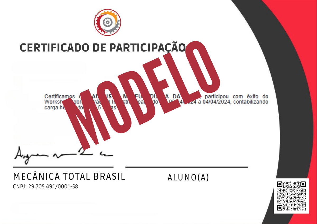 Certificado de participação Ao participar do Treinamento, você recebe um certificado de participação como esse.